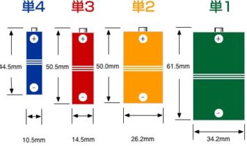 Panasonic製電池はプラス極の出っ張り部分が、他のメーカー製に比べて短いためN-1αの電池バネに接触できないことがあります。乾電池の規格サイズは上図のように決まっておりますが、出っ張り部分のサイズは決まっておりません。N-1の電池ボックスは、電池を逆装填した際の通電防止のために、プ…